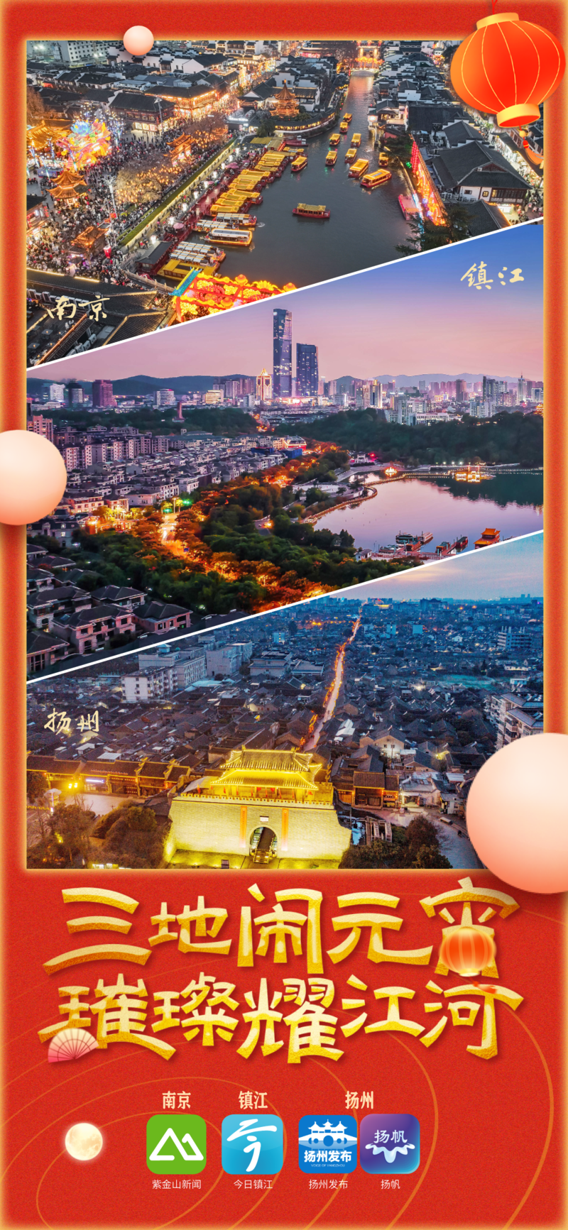 南京的秦淮河畔,镇江的金山湖边,扬州的瘦西湖旁,盏盏花灯点亮三城夜色。这个元宵,相约宁镇扬三地,漫步灯海,赏一路灯彩高照,在人声鼎沸与摩肩接踵间,元宵的节日味道一下子迸发出来。