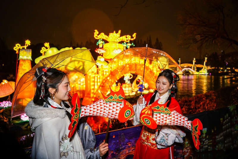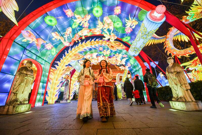 灯影灼灼,游人如织。从夫子庙逛到老门东,又一路走到白鹭洲公园,一组组明艳的灯彩,一个个沉浸的场景,秦淮灯会让老城南成为每年春节期间南京最有人气的地方。
