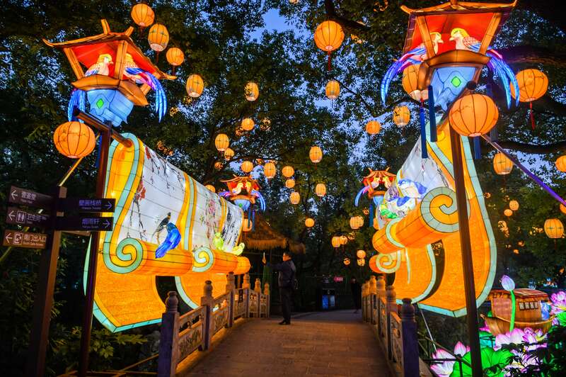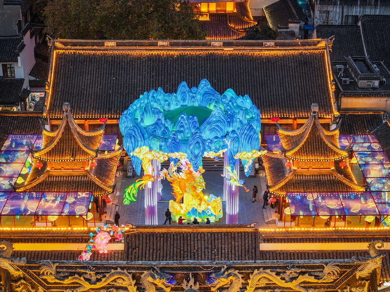 在保留传统灯会“原汁原味”的基础上,秦淮灯会不断打造新场景、催生新业态,让秦淮灯会这棵“参天大树”不断向下扎根,向上生长。作为历届灯会重要组成部分的白鹭洲公园,今年设置了“穿越之门”互动装置,与夫子庙贡院街进行场景联动;重现上元灯彩图集市盛况,复原上元主题市集;引入智能AR地图,实时查看位置增加游览互动趣味性,让市民游客感受传统上元灯彩的文脉与情怀。